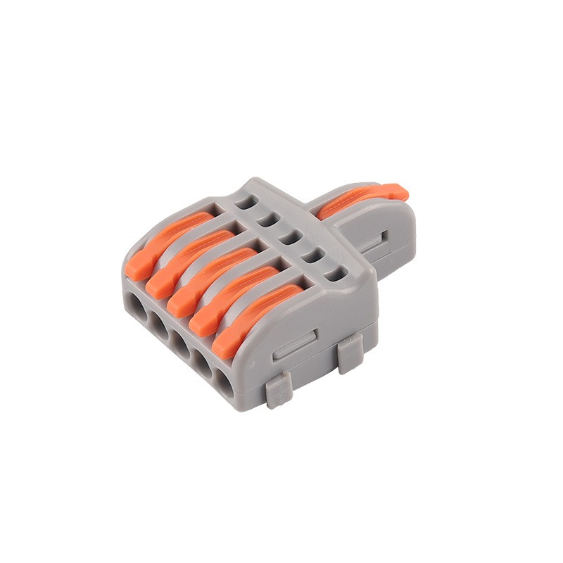 ترمینال فشاری اهرمی ۱ به ۵ یک راهکار مطمئن برای انشعابگیری از یک ورودی و توزیع جریان به پنج خروجی در مدارهای الکتریکی است. طراحی اهرمی این محصول اتصال سریع و بدون ابزار را ممکن میسازد و در عین حال اتصال محکم و پایدار را حفظ میکند. این ترمینال برای سیمهای افشان و مفتولی مناسب بوده و از شل شدن یا آسیب به رشتههای سیم جلوگیری میکند. بدنه مقاوم در برابر حرارت و فشار، ایمنی و دوام بالایی را در استفاده طولانیمدت فراهم میکند.