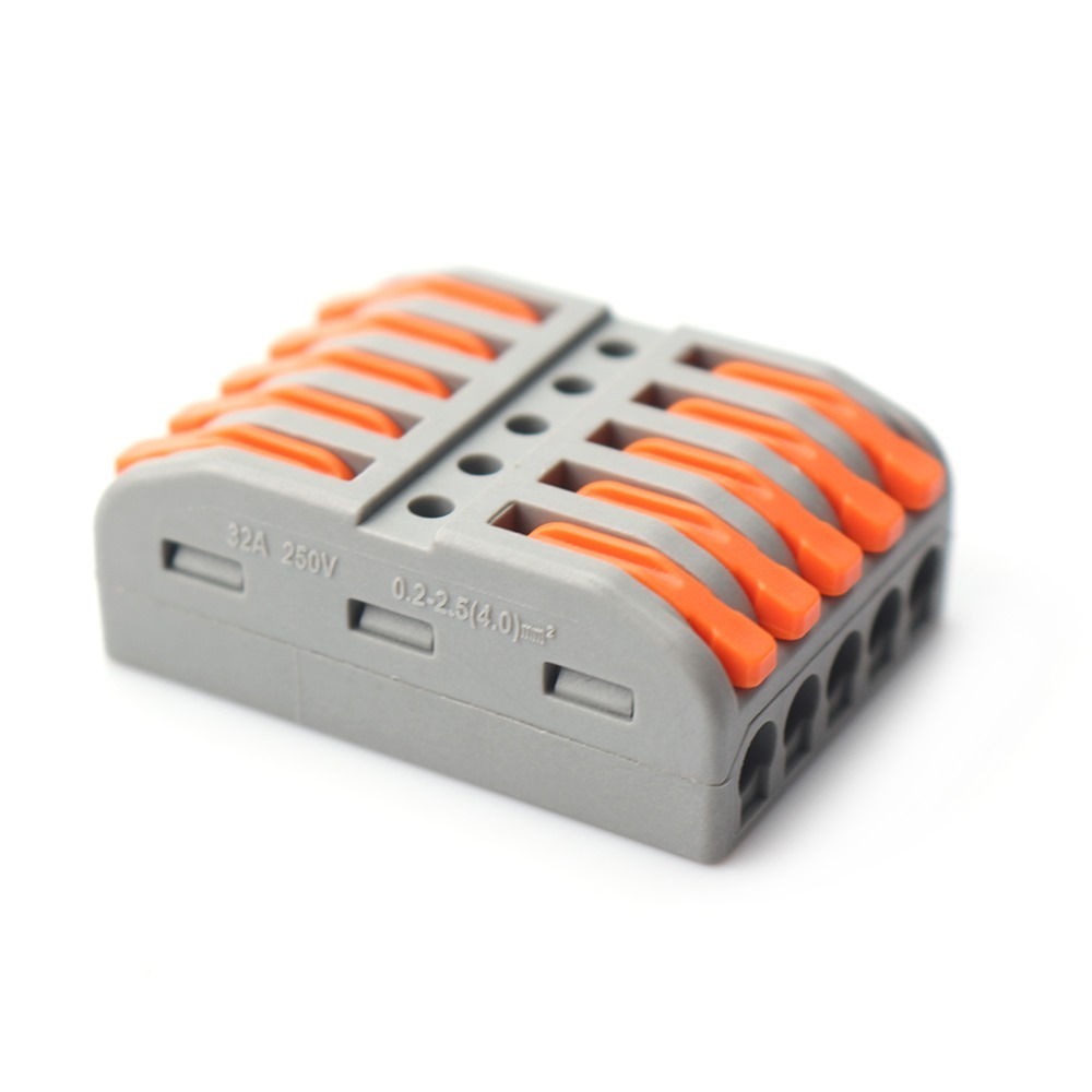 ترمینال فشاری اهرمی ۵ به ۵ یک کانکتور کاربردی و مطمئن برای اتصال سریع و ایمن پنج مسیر سیم در مدارهای الکتریکی است. این ترمینال با مکانیزم اهرمی (Push / Lever) امکان اتصال بدون نیاز به ابزار را فراهم میکند و باعث صرفهجویی در زمان نصب میشود. طراحی دقیق، اتصال محکم و پایدار را تضمین کرده و از شل شدن سیم و افت کیفیت جریان جلوگیری میکند.