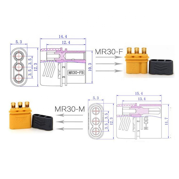 برای مشاهده انواع کانکتور XT30 ، XT60 ، XT90 ، MT30 ، MT60 ، MR30 کلیک کنید.