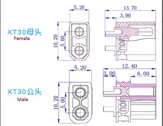 برای مشاهده انواع کانکتور XT30 ، XT60 ، XT90 ، MT30 ، MT60 ، MR30 کلیک کنید.